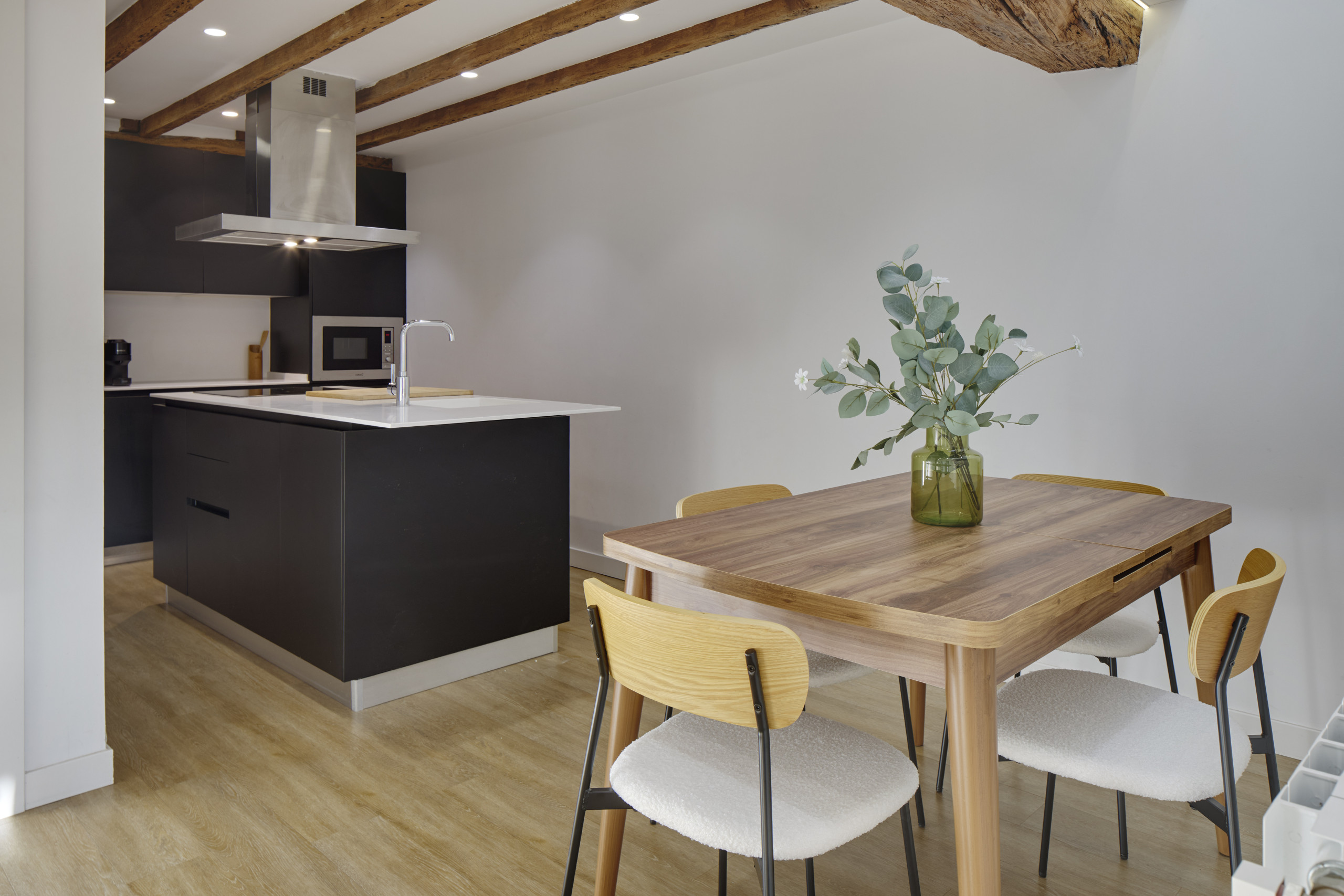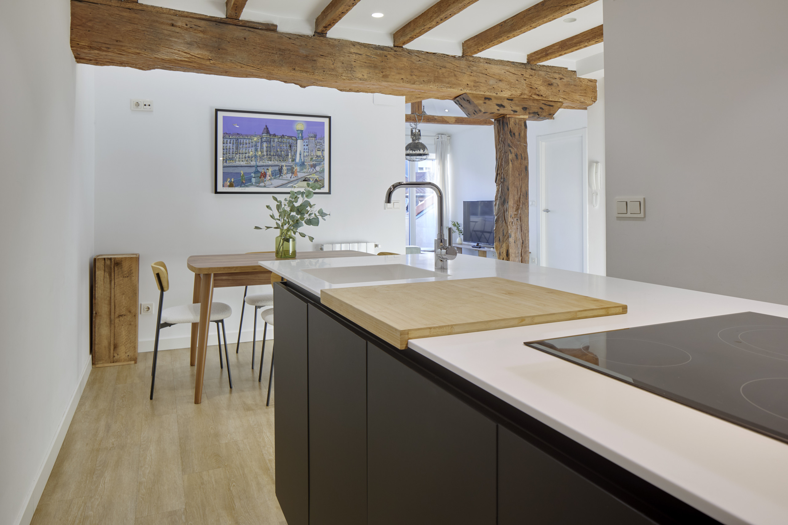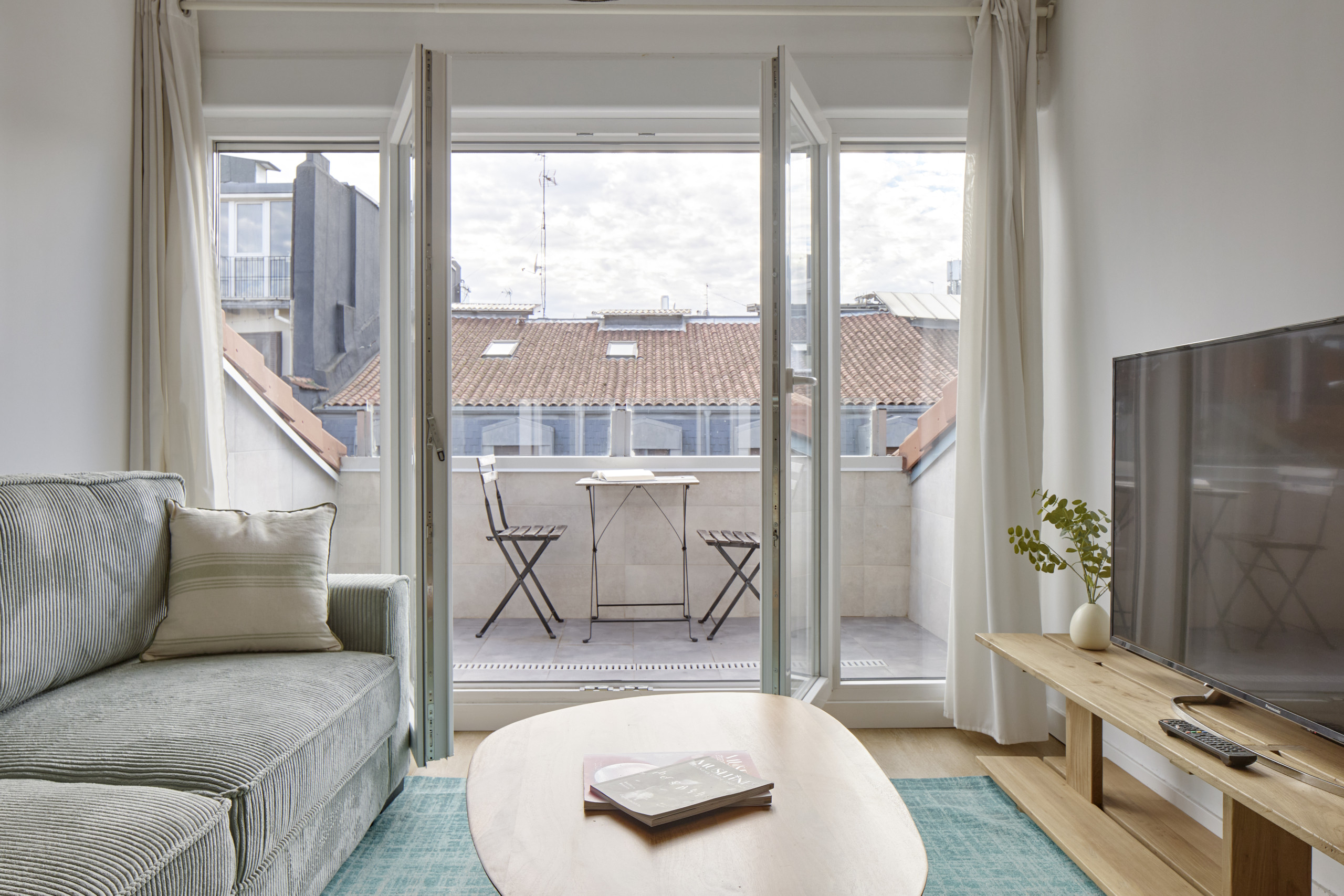 Elkano está ubicado en la parte interior a patio de manzana de un quinto piso. Por ello es un apartamento increíblemente luminoso y sobre todo, silencioso, por lo que podrás disfrutar de estar en pleno centro sin renunciar a la tranquilidad.