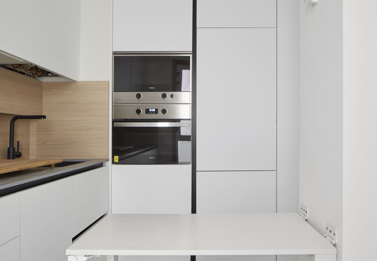 Very bright and located on the third floor of the building, which is accessed by an elevator. The living-dining room has large windows with access to the exterior balcony. The kitchen is fully equipped and brand new. It has 3 bedrooms, all of them exterior, two of them with double bed and desk, and a spacious master bedroom with a Queen-size bed. The distribution is completed by a modern and spacious bathroom with a walk-in shower and a second completely new toilet.